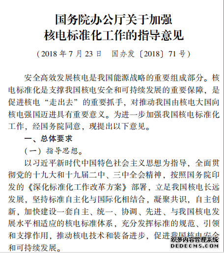 國務(wù)院辦公廳關(guān)于加強 核電標(biāo)準(zhǔn)化工作的指導(dǎo)意