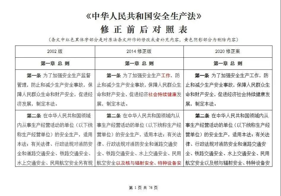 新舊《安全生產(chǎn)法》對(duì)比