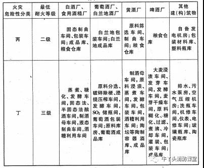 生產(chǎn)、儲(chǔ)存的火災(zāi)危險(xiǎn)性分類及建(構(gòu))筑物的最低耐火等級(jí)