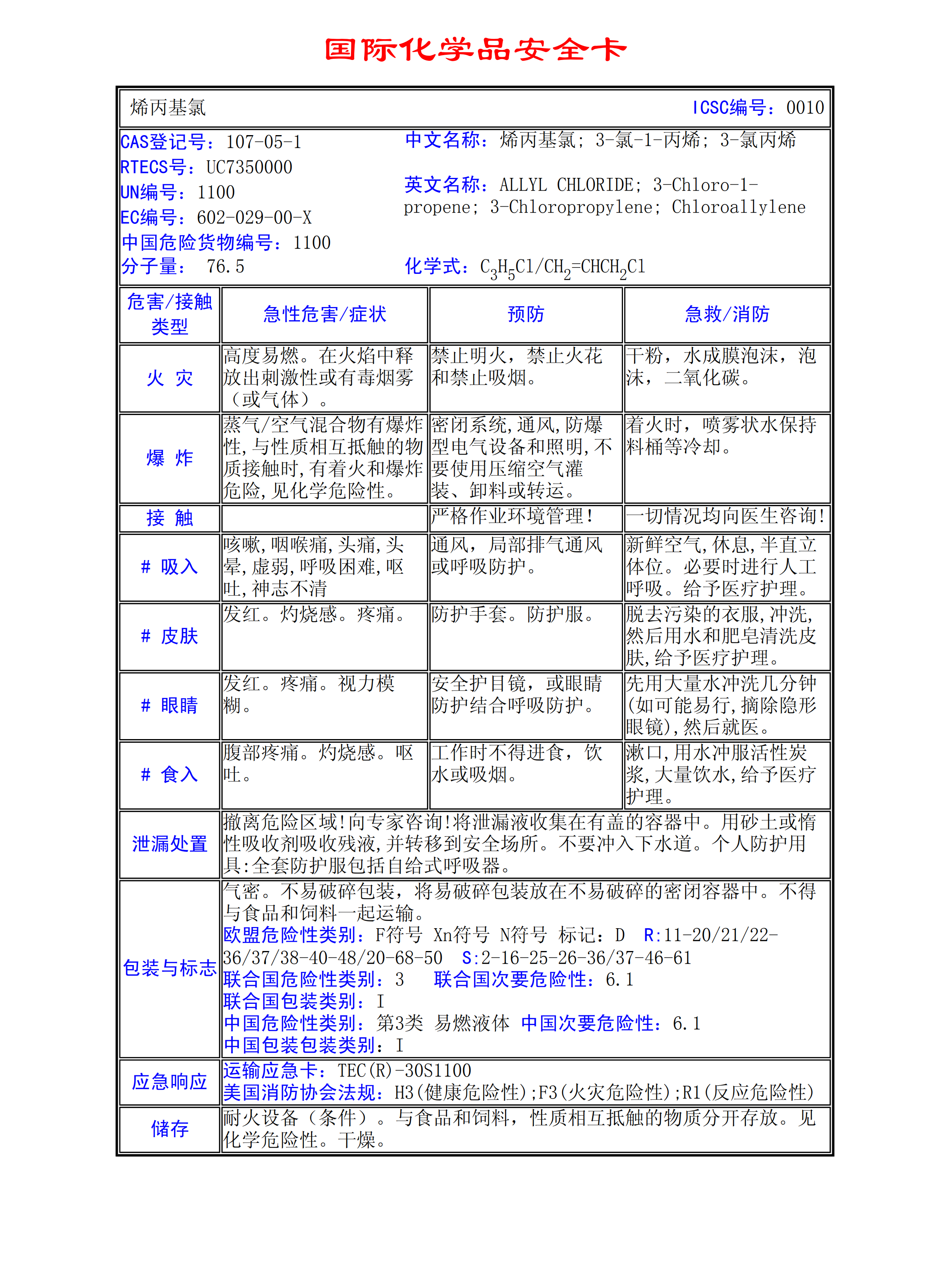 烯丙基氯MSDS
