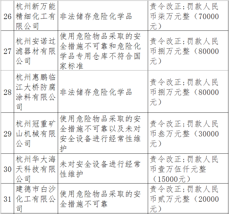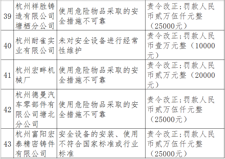 近日,杭州市應(yīng)急管理局對(duì)50多家被行政處罰的企業(yè)(個(gè)人)進(jìn)行曝光