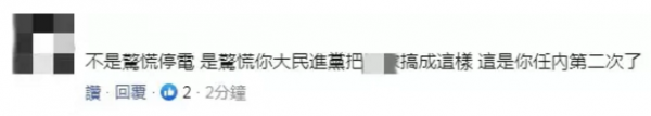 也有網(wǎng)友怒斥民進黨當局:不是驚慌停電,是驚慌你民進黨把臺灣搞成這樣,這是你任內第二次了?!?/p>
