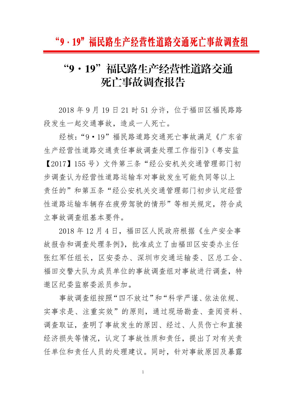 “9.19”福民路生產(chǎn)經(jīng)營(yíng)性道路交通死亡事故調(diào)查報(bào)告