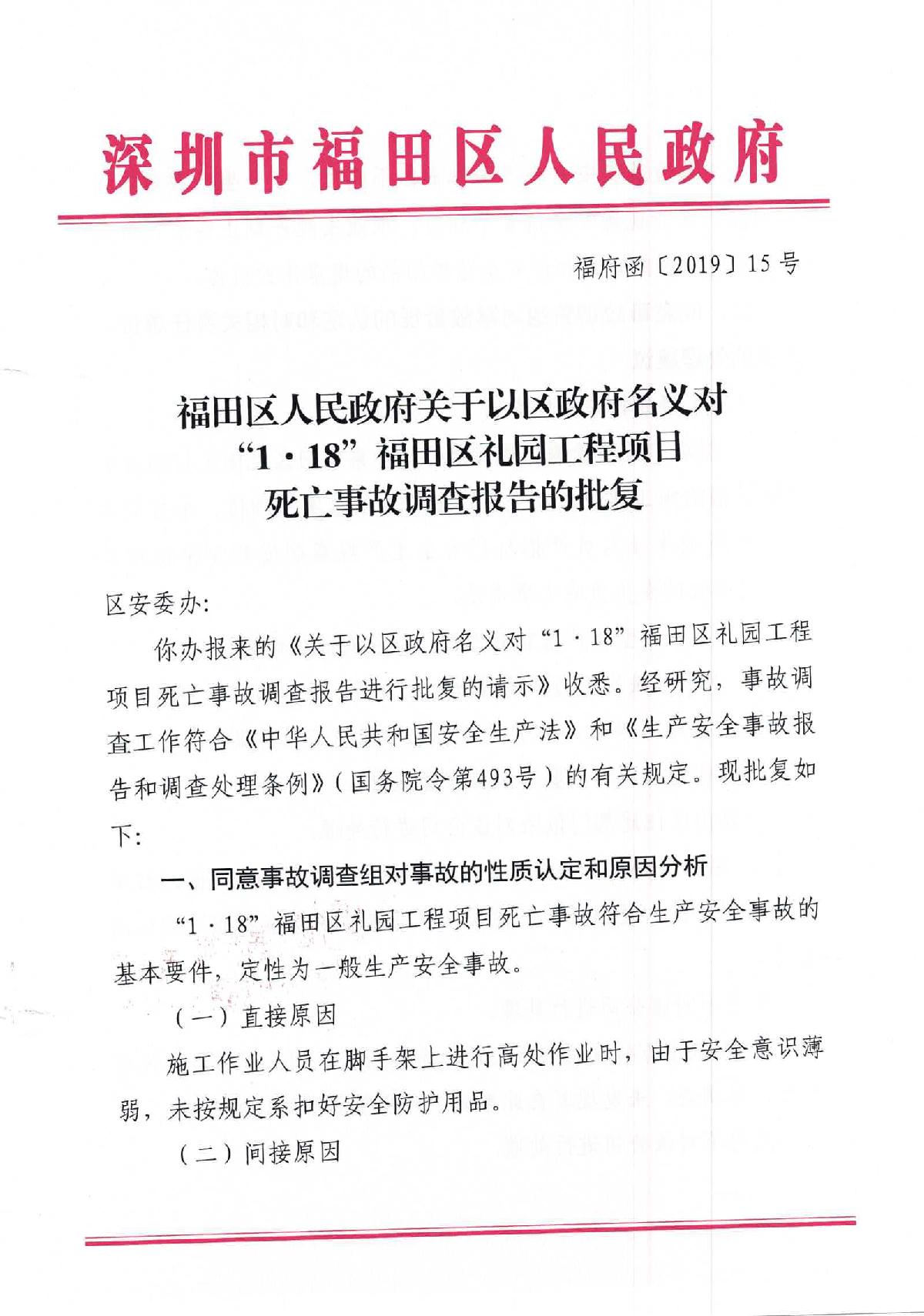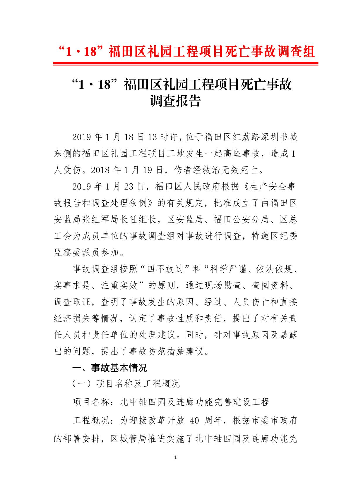“1.18”福田區(qū)禮園工程項(xiàng)目死亡事故調(diào)查報(bào)告