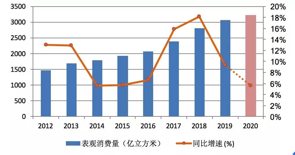 中國石油經(jīng)濟技術(shù)研究院今年年初預(yù)測,我國2020年天然氣消費量將達(dá)到3300億立方米,同比增速8.6%。