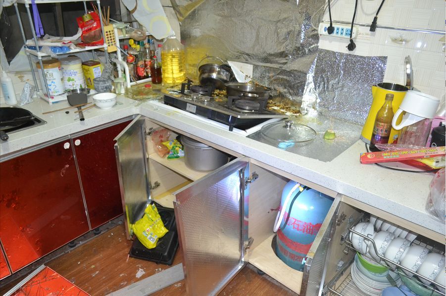 爆炸點(diǎn)位于新村鎮(zhèn)一村民楊某某家中的廚房,現(xiàn)場(chǎng)一片狼籍,窗戶(hù)也已經(jīng)飛出窗外。幸運(yùn)的是,爆炸發(fā)生時(shí)沒(méi)人在現(xiàn)場(chǎng),未發(fā)生人員傷亡。