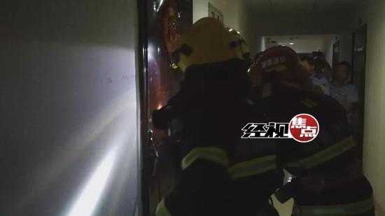四分鐘后大門(mén)被破開(kāi),房間彌漫大量燃?xì)?,消防?duì)員丁煥章立即沖了進(jìn)去,他在廚房找到了被困的女業(yè)主。