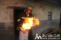8時30分,消防官兵到達現(xiàn)場,據(jù)現(xiàn)場偵察情況發(fā)現(xiàn),房屋內(nèi)一煤氣罐正向外噴射火焰,引燃了灶臺上的許多物品,煤氣罐隨時可能發(fā)生爆炸,造成人員傷亡,情況十分危急。消防戰(zhàn)斗員慕晨曦沒有絲毫猶豫,立即將手套打濕,一把抱起著火的煤氣罐就往外跑。屋外正飄著小雨、刮著風,雖然戴著消防頭盔,可火焰擦過,還是燙紅了他的臉龐。小跑至空曠地帶后,慕晨曦才將煤氣罐放下,消防官兵們連忙對罐身噴水降溫,并用濕抹布蓋滅火焰,關(guān)閉閥門。在撲滅屋內(nèi)殘火并確認煤氣罐無復燃可能后,消防官兵收整器材返回。
