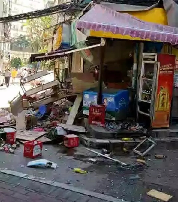 爆炸當(dāng)時(shí),士多店的墻塊、磚塊、雜物四下飛出,墻壁倒塌,甚至相隔數(shù)米之外的路邊樹(shù)葉也被震落下來(lái),商鋪內(nèi)更是一片狼藉。